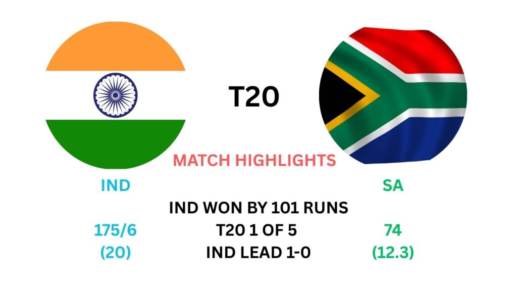 176 रनों के लक्ष्य का पीछा करते हुए, साउथ अफ्रीकी टीम पूरी तरह से संघर्ष करती नजर आई। वे 74 रन पर ऑल-आउट हो गए — यानी उन्होंने अपना पारी 12.3 ओवर में ही समाप्त कर दी। यह टीम के लिए T20I इतिहास में सबसे खराब प्रदर्शन में-से एक माना जा सकता है।