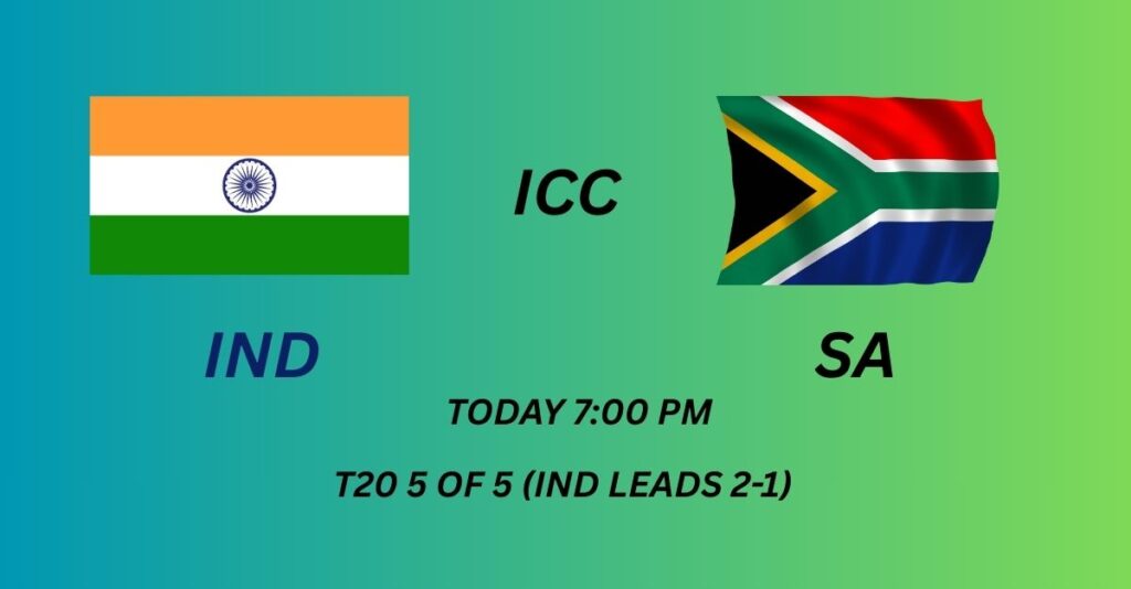 आज का IND vs SA 5th T20I मैच दोपहर/शाम को निर्धारित समय पर शुरू होगा। भारतीय समयानुसार मैच का टॉस और शुरूआती समय की जानकारी उपलब्ध है: