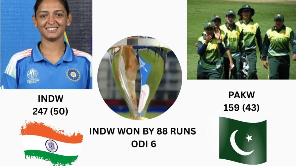 भारत ने फिर से पाकिस्तान को मात दी और अब तक सभी 12 पुरुषों और महिलाओं की WODI सीरीज में 12–0 की रिकॉर्ड बढ़ाई।
