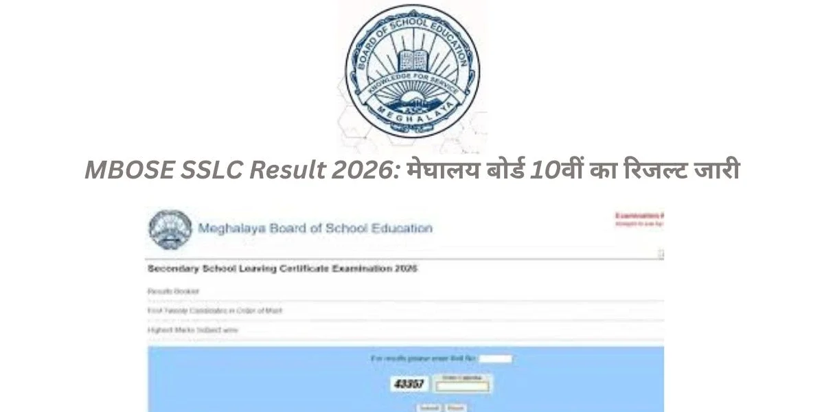 मेघालय बोर्ड ऑफ स्कूल एजुकेशन (MBOSE) ने आखिरकार SSLC (कक्षा 10वीं) परीक्षा 2026 का परिणाम जारी कर दिया है। इस घोषणा के साथ ही राज्यभर के हजारों छात्रों का इंतजार खत्म हो गया है। छात्र अब आधिकारिक वेबसाइट पर जाकर अपना रिजल्ट आसानी से चेक कर सकते हैं।