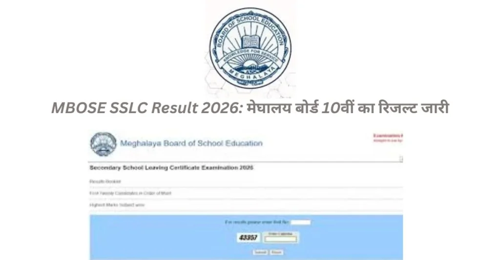 मेघालय बोर्ड ऑफ स्कूल एजुकेशन (MBOSE) ने आखिरकार SSLC (कक्षा 10वीं) परीक्षा 2026 का परिणाम जारी कर दिया है। इस घोषणा के साथ ही राज्यभर के हजारों छात्रों का इंतजार खत्म हो गया है। छात्र अब आधिकारिक वेबसाइट पर जाकर अपना रिजल्ट आसानी से चेक कर सकते हैं।